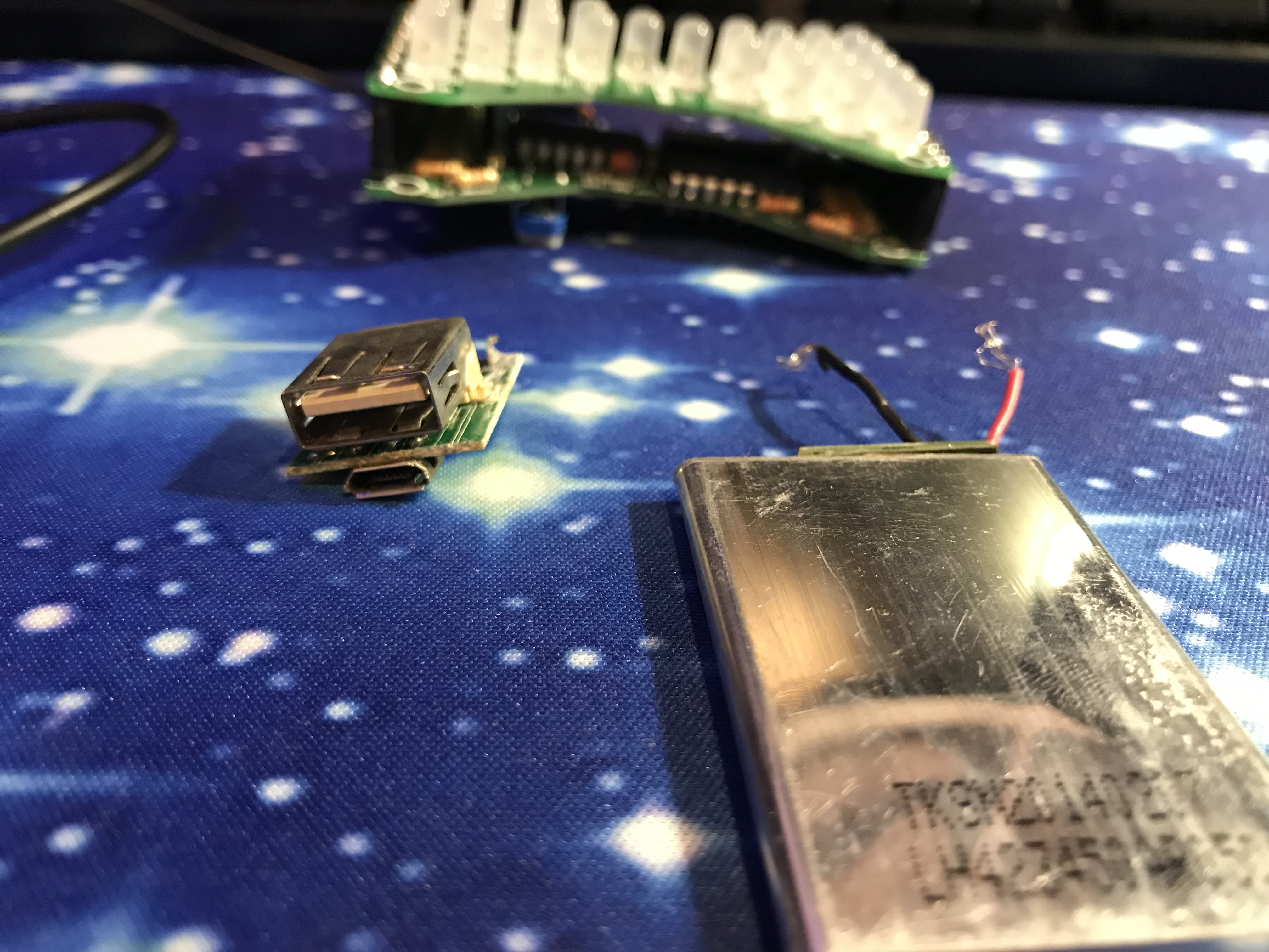 Io ho preso una batteria di un vecchio smartphone e un convertitore e ricaricatore di una powerbank con la batteria danneggiata.