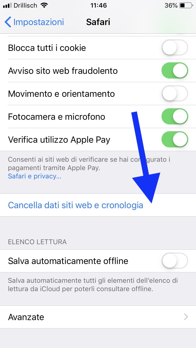 iOS: Safari non carica la pagina. Come fare la pulizia della cache di Safari?