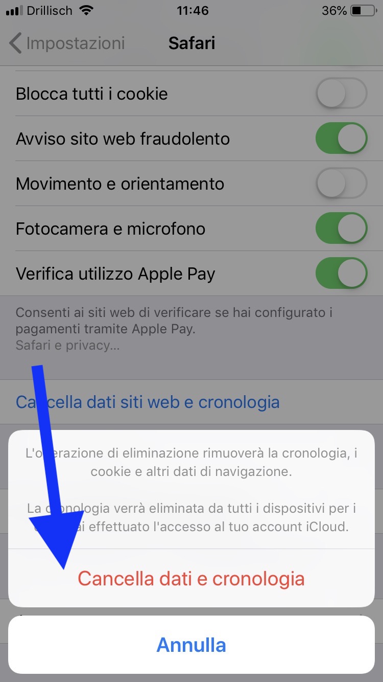 iOS: Safari non carica la pagina. Come fare la pulizia della cache di Safari?