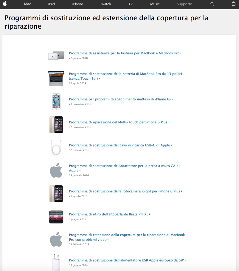 Infatti entrando dentro ad ogni programma potete vedere che in fondo ci sono delle note della durata o vedere se il vostro modello rientra nel programma. Ad esempio per le batterie del 6s hanno messo una pagina web dedicata dove inserendo il nostro seriale ci indica se ha la batteria da sostituire o no!