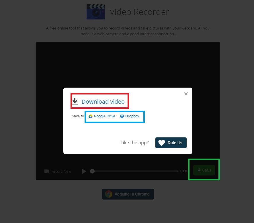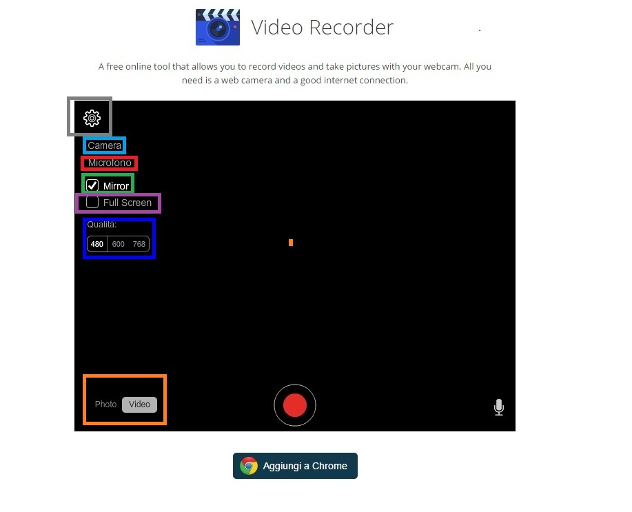 Cliccando sul tasto rosso parte la registrazione, per fermarla basta ri-cliccare lo stesso tasto.