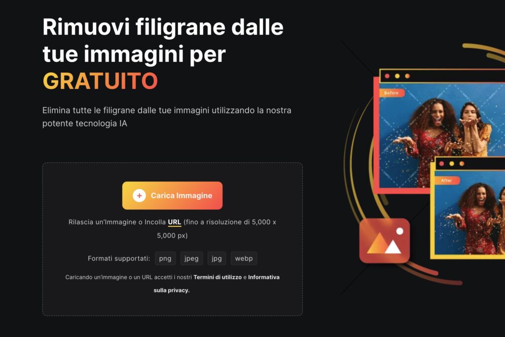 Watermarkremover.io è un sito che rimuove gratuitamente le filigrane dalle foto.