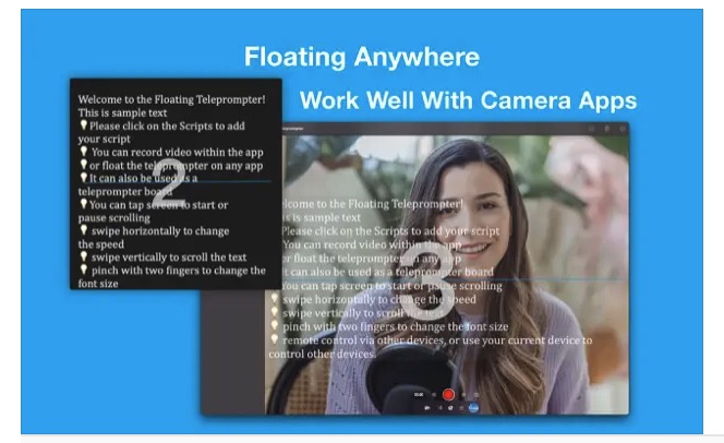 Teleprompter fa per te! Questa app ti permette di leggere un testo preparato mentre ti registri.