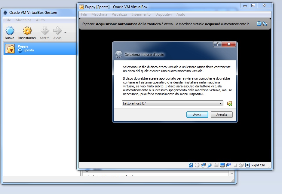 Nella seguente guida come esempio useremo una versione di Linux (Linux puppy) molto leggera